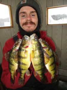 Tip up fishing is slim to none for us do to the – 30 and – 40 wind chills but, inside the ice houses we are doing well. No hole covers, no tip ups, hole covers are mandatory. A hearty sole is required to check the flags. Triple hand warmers inside my choppers.