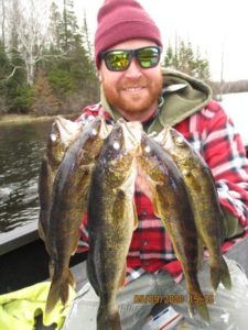 Make no mistake about it, the fish are biting in Vilas County Wisconsin, for us. Fish where they spawn or around that area and even in this cold water time frame you could catch some Walleye. A slow presentation is important, running and gunnig is not my recommendation, at today’s water temps.