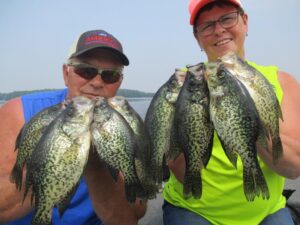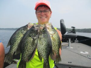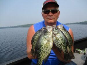 Water temps in the mid 70’s today, where we were fishing. Wood structure and some trolling, yes trolling for Crappie.
