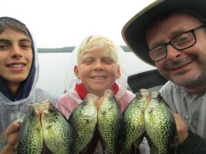Even in the rain of this morning this father and his 2 young sons had a ball catching dozens of small Crappie.