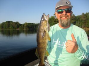 Stay  in 11 to 13 ft out in front of the swim raft and fish for Walleye, Bass and Pike, also very good.