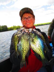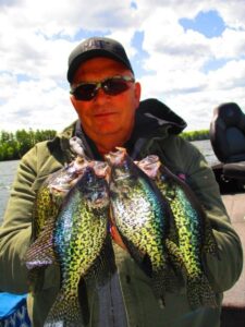 All Gills and Crappie just at spawning and or still waiting to spawn, depending what lake your on.  Minnows and plastics are working.