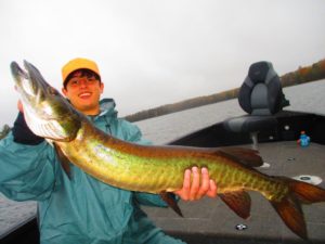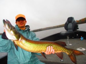 More fantastic clients, this young man along with his father hooked this magnificent  Musky on a Suick over shallow weeds. The fight was tremendous, as this fish fought every inch back to the boat and including inside the basket.