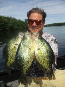 The fish were very light biting today, for us. Several released and once again, I can hear the oil popping on Lake Crisco now. Deep fish were caught and suspended fish also were biting.