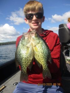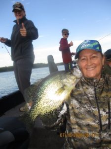 These Crappie were all on minnows, again. Plastics are also working. Deep wood piles, weeds as well as suspended Crappie are present and biting. Working all locations can be productive.