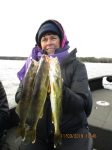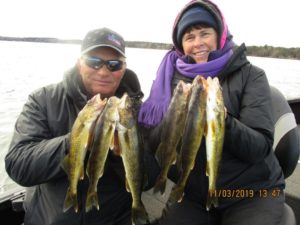On this day we were partly cloudy but still cold, all fish were hard hitting and minnows were the best. A slow presentation is always good in late fall. This husband and wife still enjoyed there 1/2 day on the water. Good job guys.