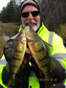 A good day for the wind on this day, mild breeze and the fish were biting, as on several lakes. Deeper fish are best for us and a couple of Jumbo perch were boated. The Walleye are going strong, as mentioned above, on several lakes. Trout Lake is booming with results. Work rock bar drop offs, for us.