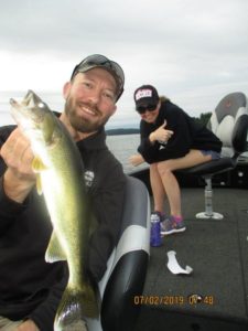 Today our fish were deeper in the calm conditions which lasted till 1 PM for us. Lots of activity with multiple species biting on this clear lake where we were fishing. Crank baits are working and trolling is producing well. Live bait also working well as leeches are producing and some crawler harness’s are also working, depending on what lake you are fishing